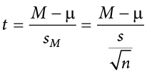 In Chapter 7, we were introduced to hypothesis testing using the z statistic for sample means that we learned in Unit 1. This was a useful way to link the material and ease us into the new way to looking at data, but it isn’t a very common test because it relies on knowing the population’s standard deviation, s, which is rarely going to be the case. Instead, we will estimate that parameter s using the sample statistic s in the same way that we estimate mu using Upper M (mu will still appear in our formulas because we suspect something about its value and that is what we are testing). Our new statistic is called t, and for testing one population mean using a single sample (called a one-sample t test) it takes the form: