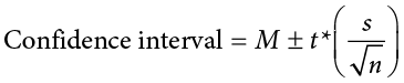 A confidence interval starts with our point estimate and then creates a range of scores considered plausible based on our standard deviation, our sample size, and the level of confidence with which we would like to estimate the parameter. This range, which extends equally in both directions away from the point estimate, is called the margin of error. We calculate the margin of error by multiplying our two-tailed critical value by our standard error: