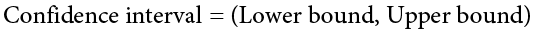 To write out a confidence interval, we always use round brackets (i.e., parentheses) and put the lower bound, a comma, and the upper bound: