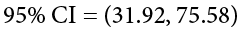 It is very tempting to also interpret this interval by saying that we are 95% confident that the true population mean falls within the range (31.92, 75.58), but this is not true. The reason it is not true is that phrasing our interpretation this way suggests that we have firmly established an interval and the population mean does or does not fall into it, suggesting that our interval is firm and the population mean will move around. However, the population mean is an absolute that does not change; it is our interval that will vary from data collection to data collection, even taking into account our standard error. The correct interpretation, then, is that we are 95% confident that the range (31.92, 75.58) brackets the true population mean. This is a very subtle difference, but it is an important one.