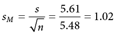 Now we can construct our confidence interval. After we collect our data, we find that the average person in our community scored 39.85, or M = 39.85, and our standard deviation was s = 5.61. First, we need to use this standard deviation, plus our sample size of N = 30, to calculate our standard error: