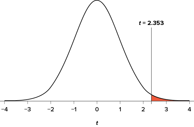 Figure 8.2. Rejection region. (“Rejection Region t2.353” by Judy Schmitt is licensed under CC BY-NC-SA 4.0.)